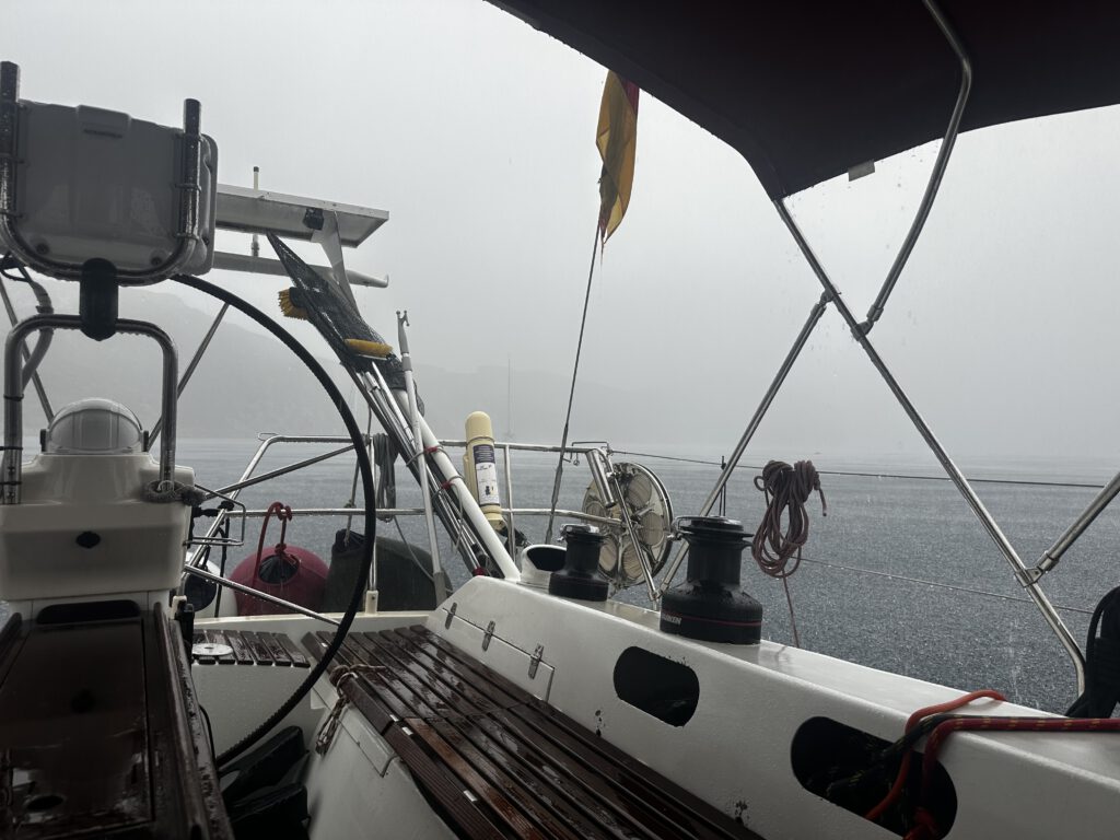 Der Regen setzt ein und am Himmel zucken immer wieder Blitze durch die schwere Wolkendecke. Wir liegen sicher an der Mooring im Bojenfeld Es Port und haben uns gestern Abend bereits auf starke Regenfälle vorbereitet. Die Bucht ist Glatt, nur ein leichter Schwell erreicht uns. Wir warten. Die alte Festung schaut düster und bedrohlich auf uns von Ihrem Felsen herab.
