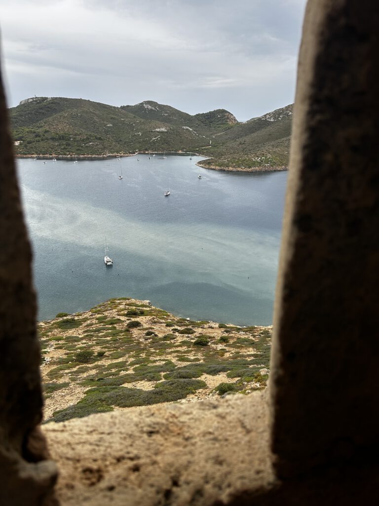 Wir sind auf Cabrera, einem kleinen Archipel vor der Südost-Seite Mallorcas, Die Wettervorhersage für morgen: Gewitter. So wollen wir auf der einen Seite das Archipel erkunden – andererseits suchen wir Schutz vor eventuellem Starkwind, der mit den aufziehenden Gewittern immer möglich ist. Wir wollen kein Risiko eingehen in Zeiten des Klimawandels und der immer zunehmenden Wetterextreme.